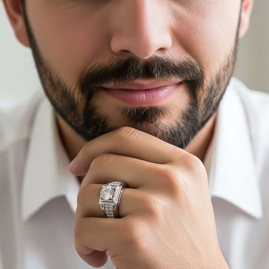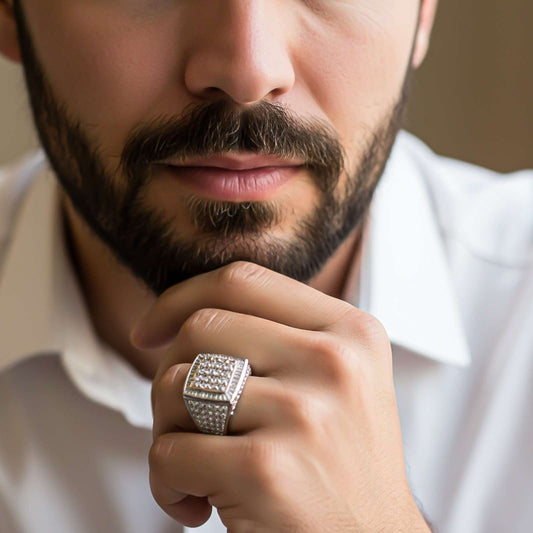 Silver Square Cluster Statement Ring for Men