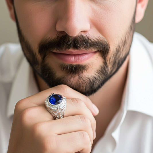 Silver Oval Sapphire Vintage Ring for Men