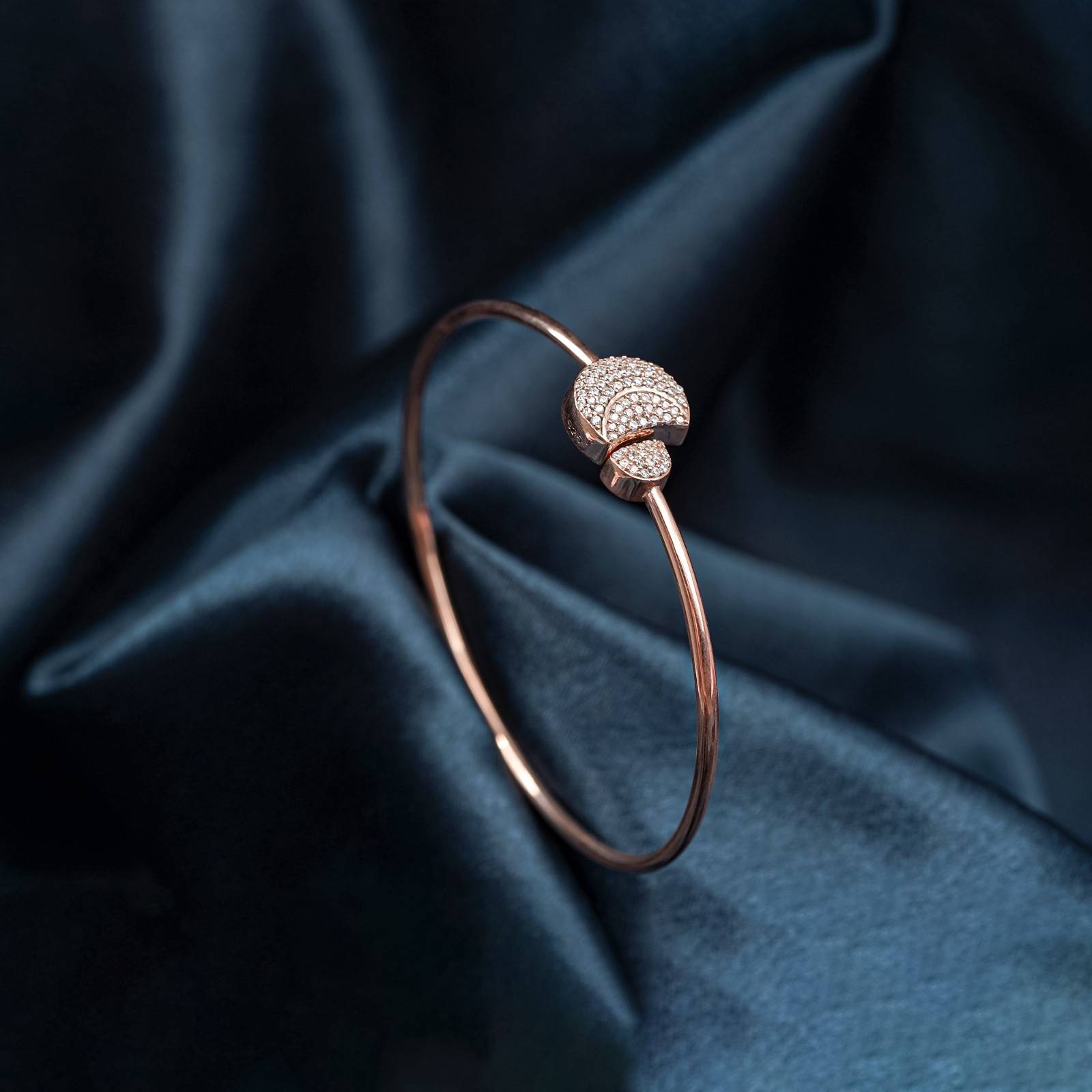 Silver jewelry for wedding lehenga for a Muslim bride, would be an absolute delight. Cool toned shararas or lehengas paired with our Rose Gold Vermiel Fiji Pave Diamond Bangle would give you the perfect regal royal look.