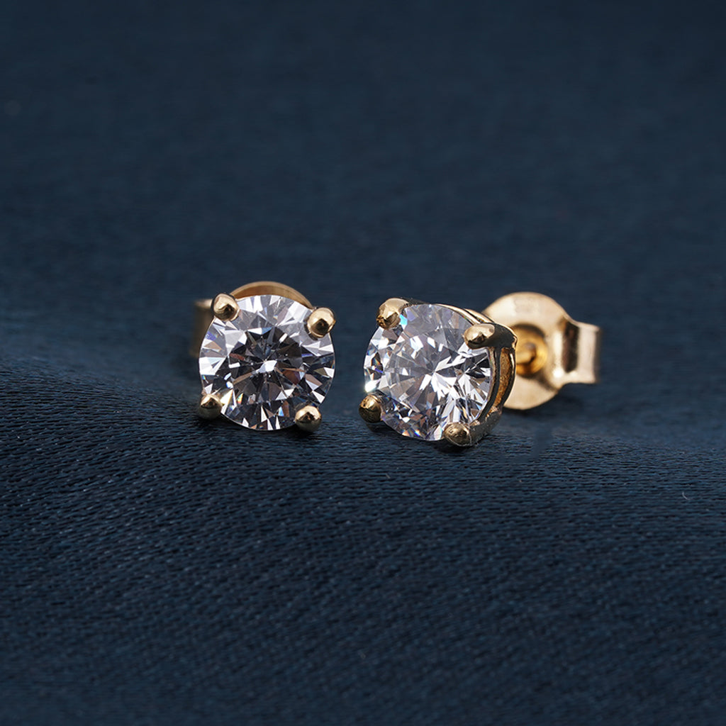 If you are a Bengali bride,pair our Golden Diamond Solitaire Stud Earrings with your gold jewelry, red bindi and traditional red sarees.