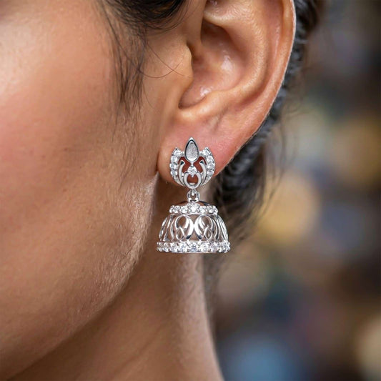 Silver Jhumka Diamond Ethnic Wear Earrings