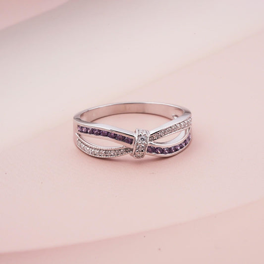 0.25Ct Moissanite & Amethyst Eye Band Ring