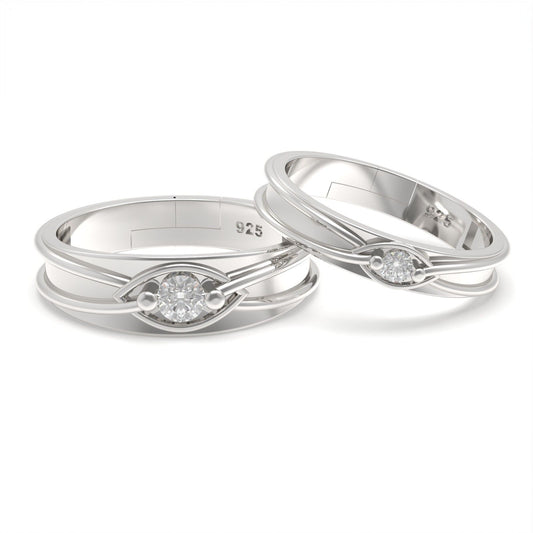 Silver Cubic Zirconia Solitaire Princess Couple Bands