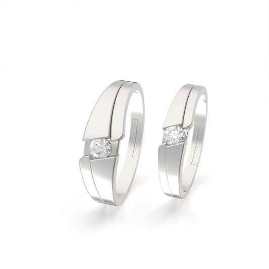 Silver Classic Solitaire Couple Ring Bands