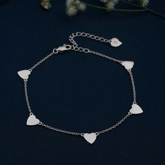 50% OFFSilver 5 Hearts Dazzling Anklet