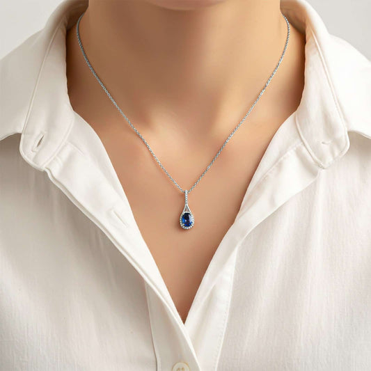 Silver Dazzling Halo Sapphire Pendant