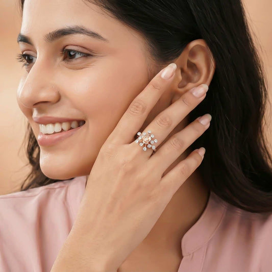 Silver Cubic Zirconia Flower Ring
