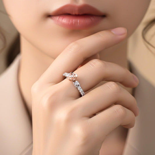 Rose Gold Rose Design Two Tone Ring