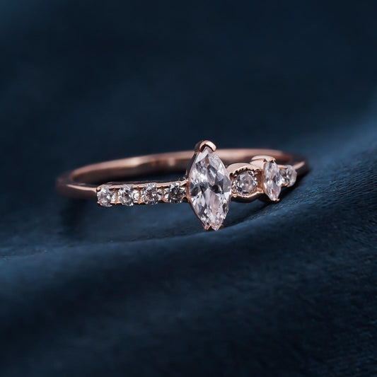 Rose Gold 1Ct Marquise Cut Moissanite Solitaire Engagement Ring