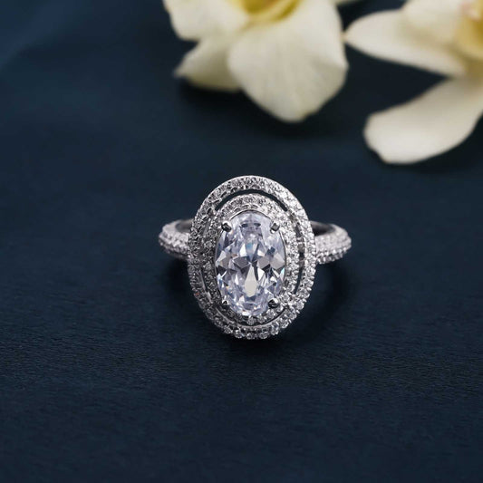 3.25Ct Oval Moissanite Double Halo Engagement Ring