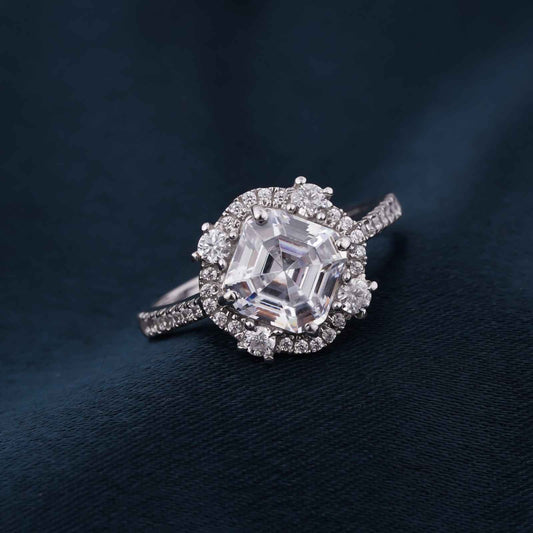 Silver 2.5Ct fancy Asscher Moissanite Florist Ring