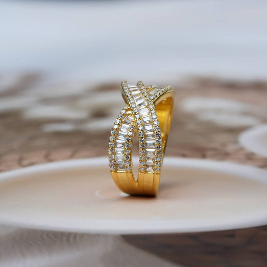 Golden 2Ct Round Moissanite Infinity Statement Ring