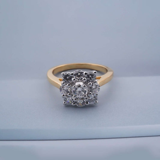 1Ct Round Moissanite Cluster Ring For Her With 18K Gold Plating