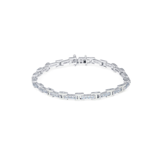 Silver Cubic Zirconia Lobster Claw Tennis Bracelet