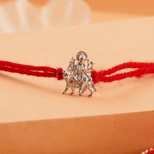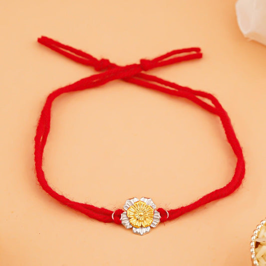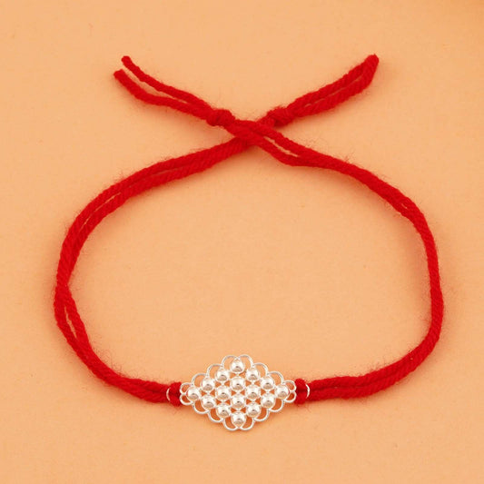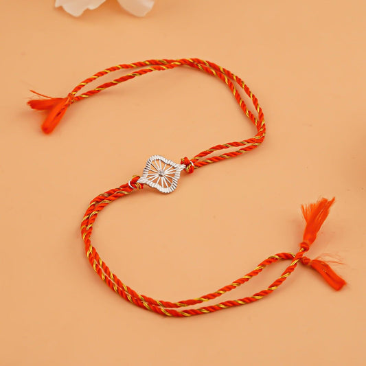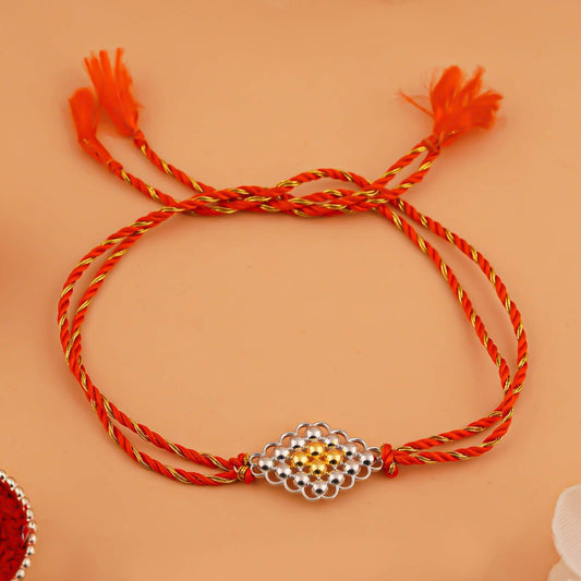 A silver rakhi symbolizes purity and lasts longer than thread rakhis.