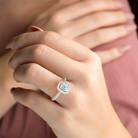 Silver Green Emerald Leaf Design Ring