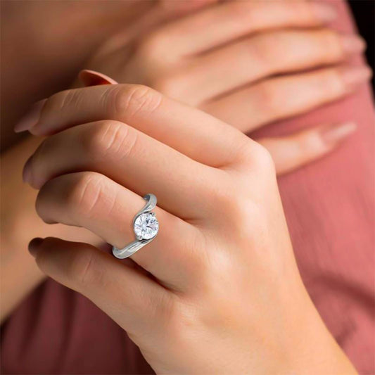 Silver Twisted Band Solitaire Ring