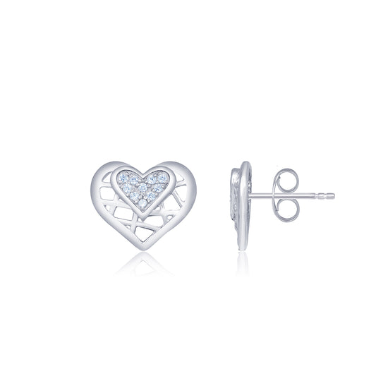 Silver Zircon Small Heart Stud Earrings