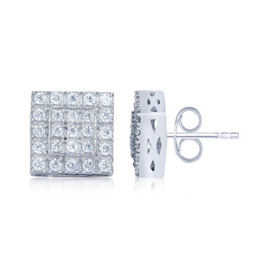 Silver Zircon Unisex Square Studs