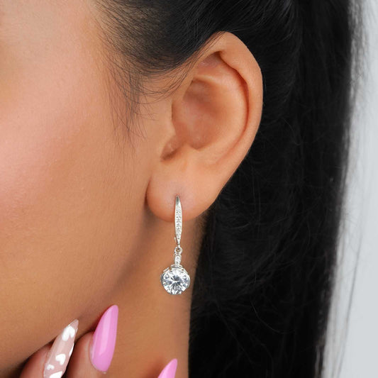 Silver Zirconium Round Drop Earrings