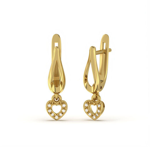 Sterling Silver Heart Drop Gold Earrings