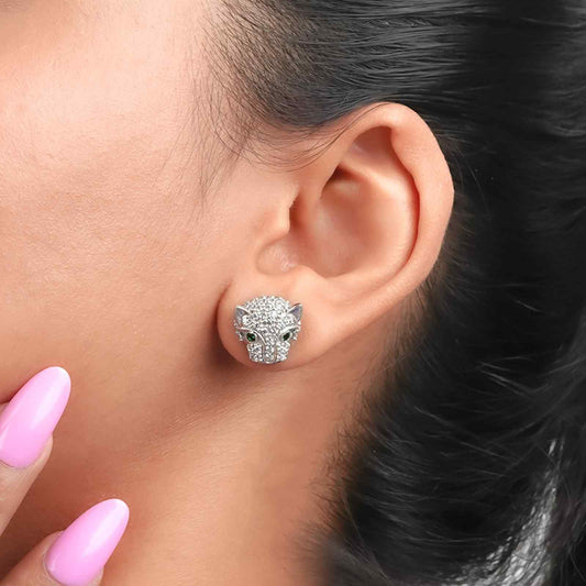 Silver Green Panther Stud Earrings