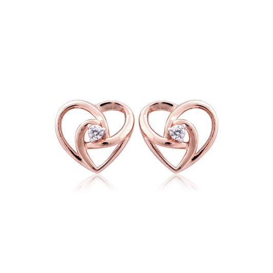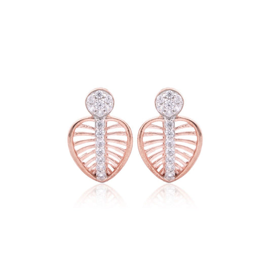 Rose Gold Zircon Studded Heart Earrings