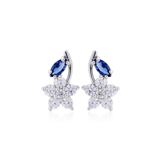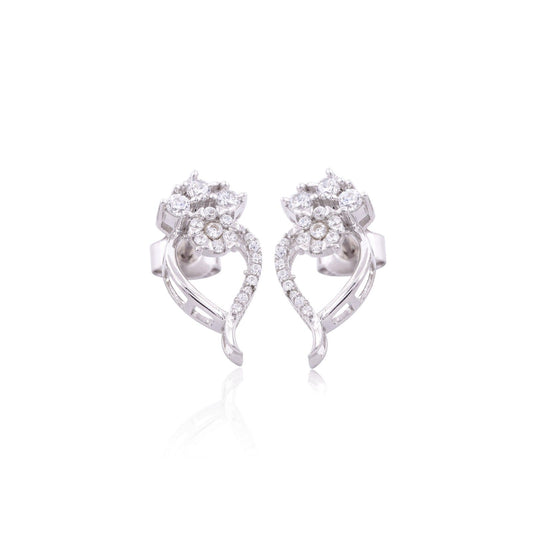 Silver Floral Zircon Stud Earrings
