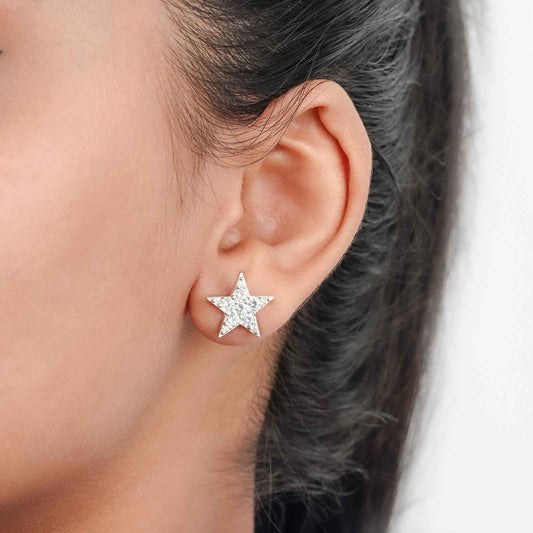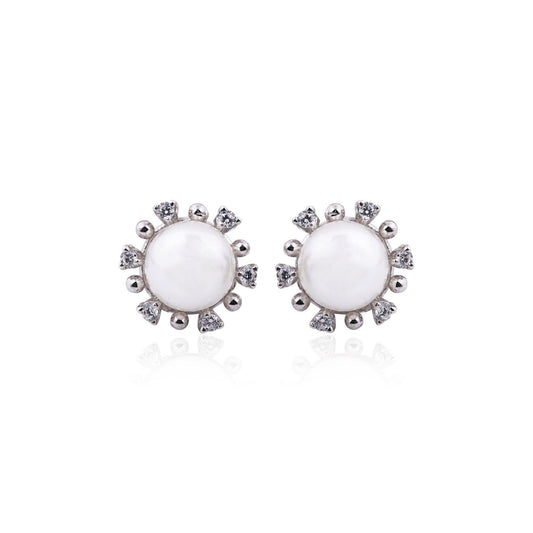 Silver Sparkle White Zircon Stud Earrings