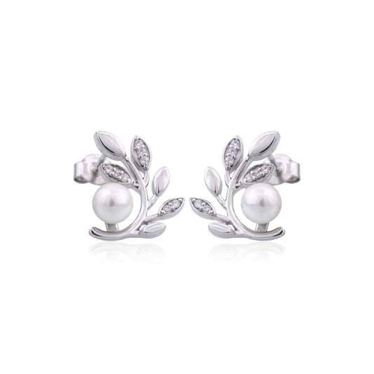70% OFFSilver Pearl Leaf Stud Earrings