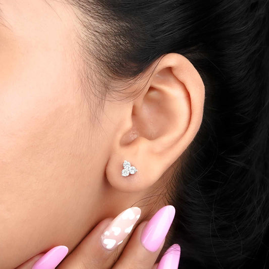 Silver Three Stoned Stud Earrings