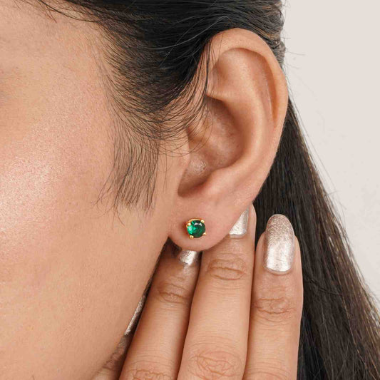 Golden Mini Emerald Stud Earrings