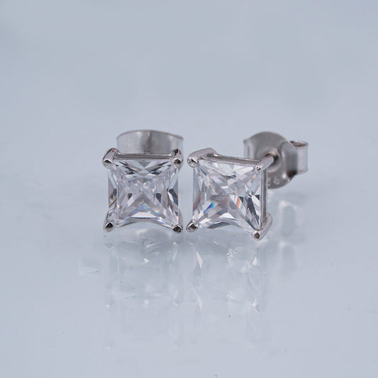 Silver Rectangle Zircon Stud Earrings