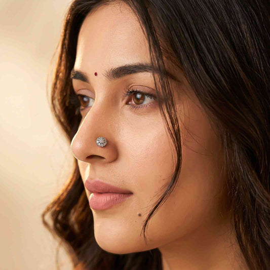 Silver Round Cluster CZ Nose Pin for Women