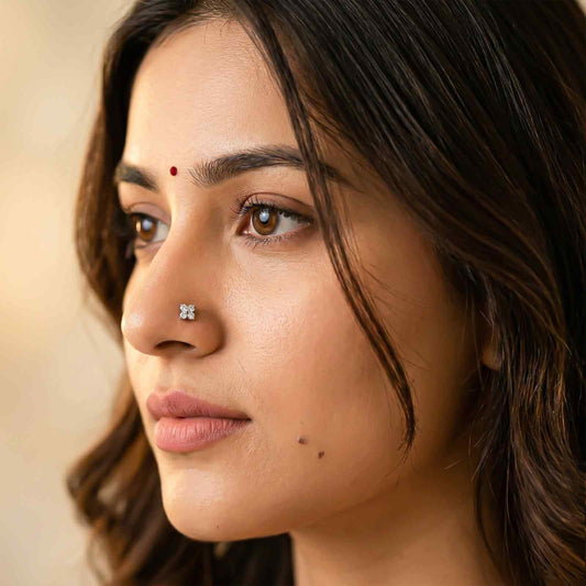 Silver Floral CZ Nose Pin for Women