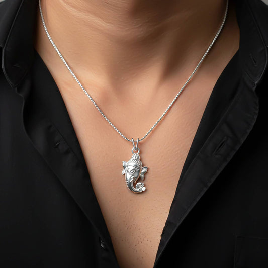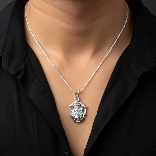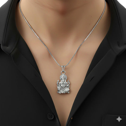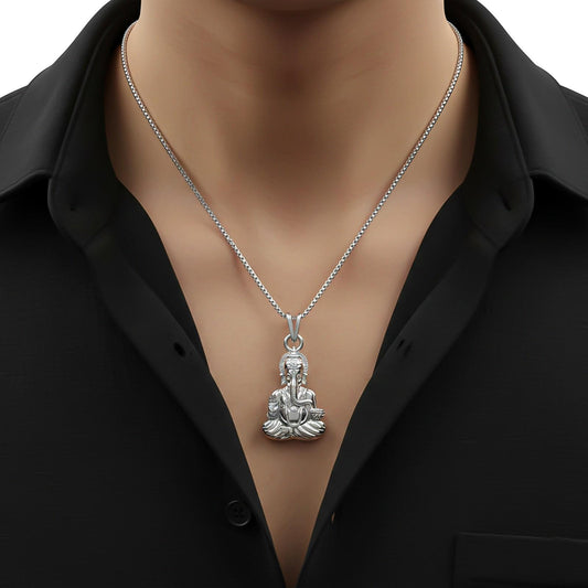 Silver Lord Ganesh Ji Gajanand Vighnaharta Design Pendant