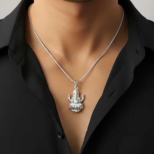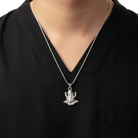 Silver Lord Ganesha Sitting On Lotus Pendant
