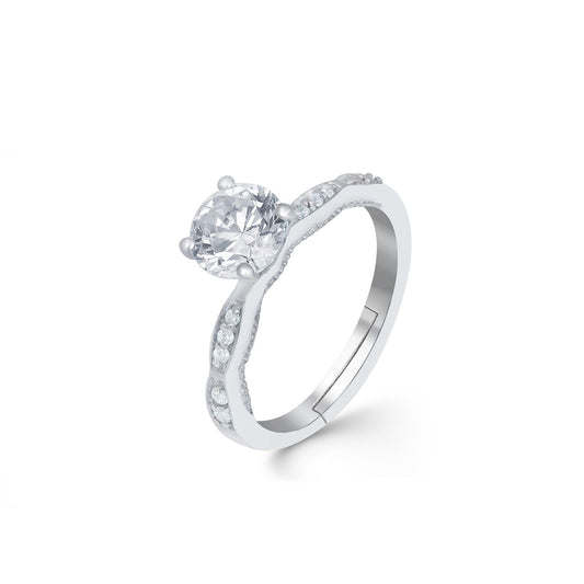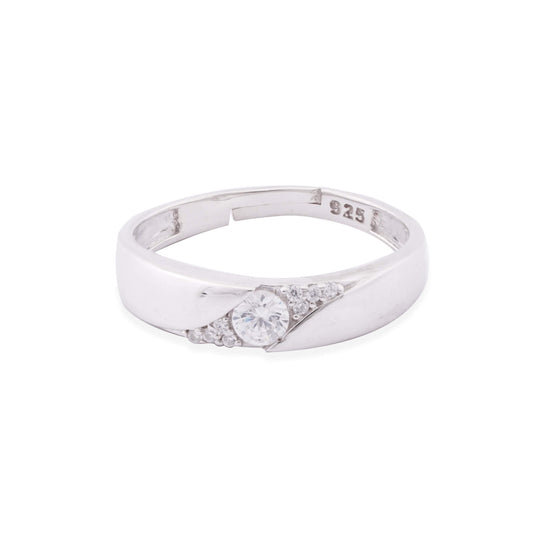 Silver Solitaire Swiss Zircon Thin Band Ring