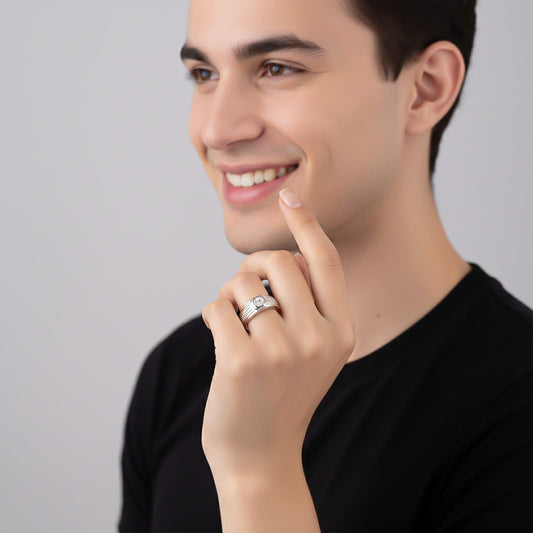 Silver Cocktail Solitaire Ring For Men's