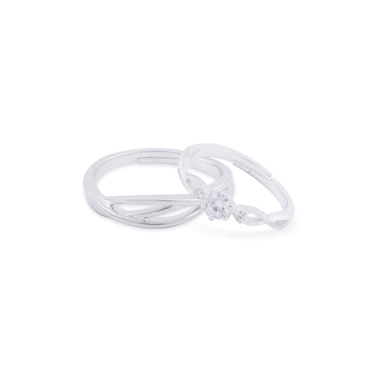 Silver Cubic Zirconia Solitaire Princess Couple Bands