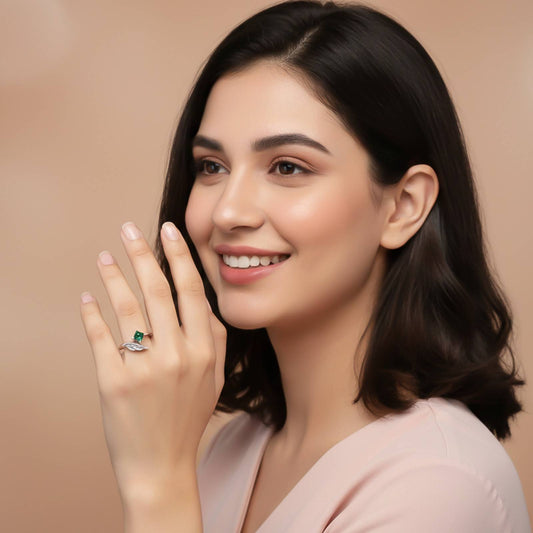 Silver Green Emerald Solitaire Silver Ring