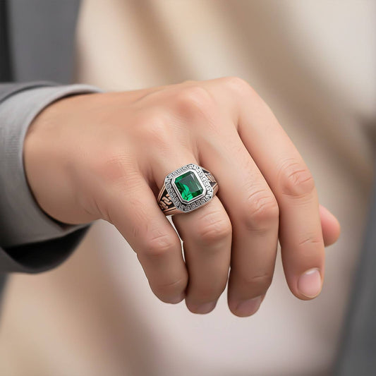 Silver Emerald Signet Greek Ring For Him