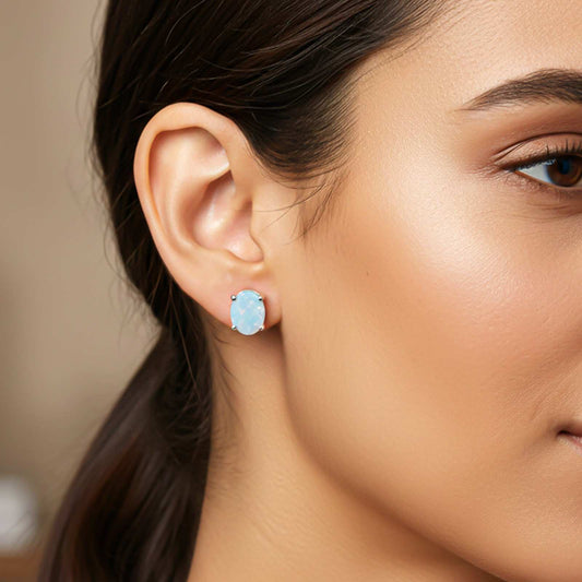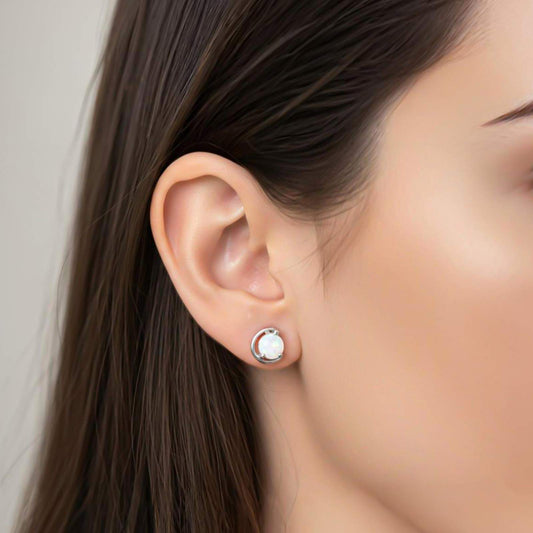 Silver Classy Solitaire Opal Studs