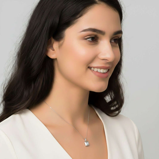 Silver Princess Cut Solitaire Diamond Pendant