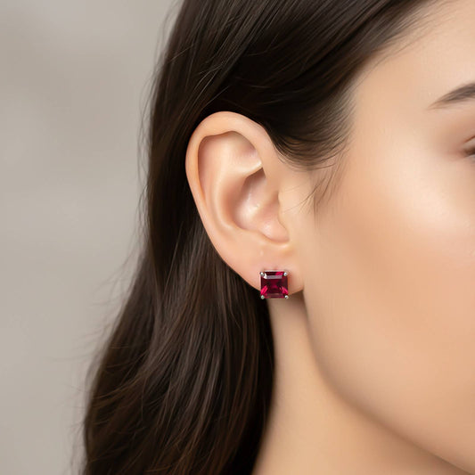 Silver Pink Ruby Solitaire Stud Earring
