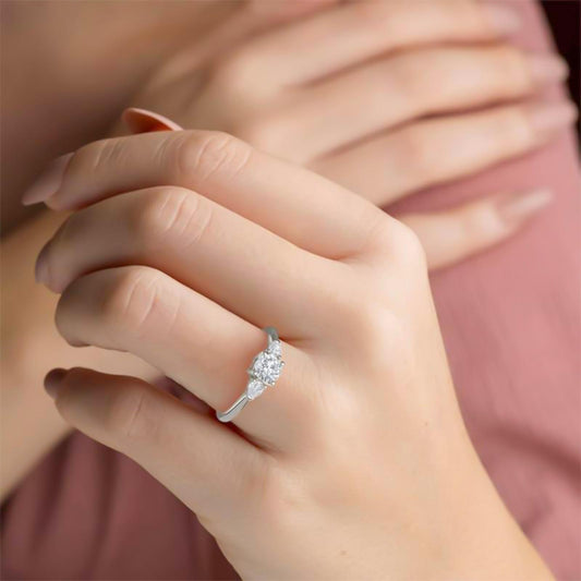 MOISSANITE 46% OFF1Ct Moissanite Vega Round and Pear Trilogy Ring
