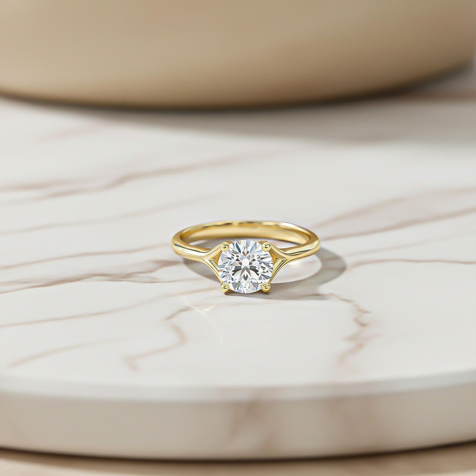This silver ring features a solitaire shank motif with a round centerpiece made entirely item from 925 sterling silver with 14K gold plating.