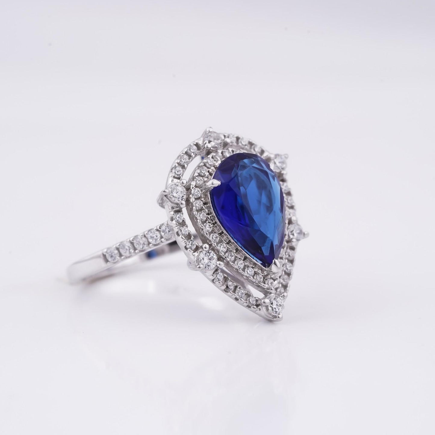 1Ct Round Moissanite Pear Sapphire Halo Ring