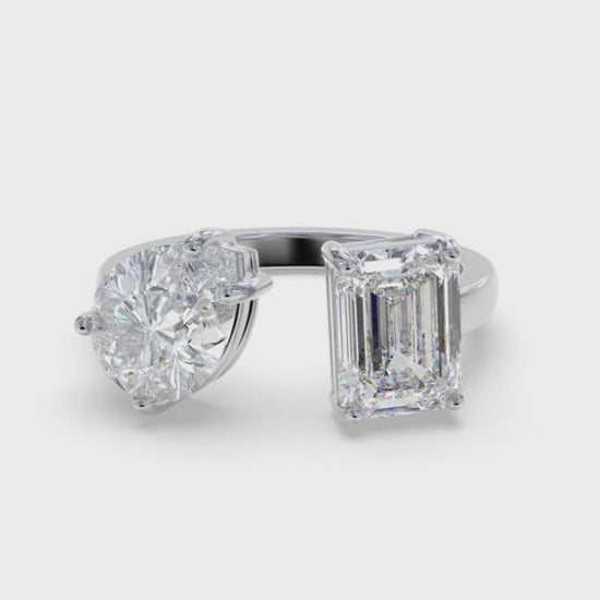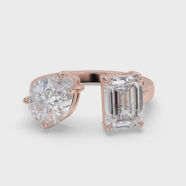 2Ctw Emerald & Pear Moissanite Bear Ring