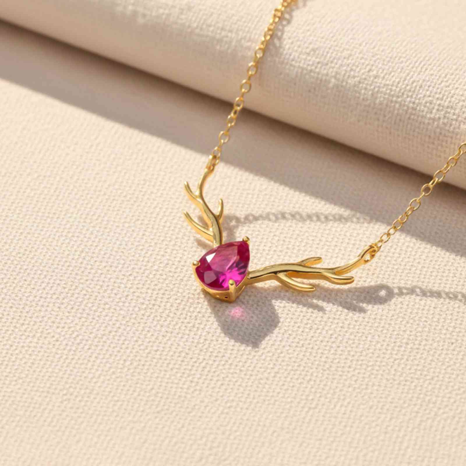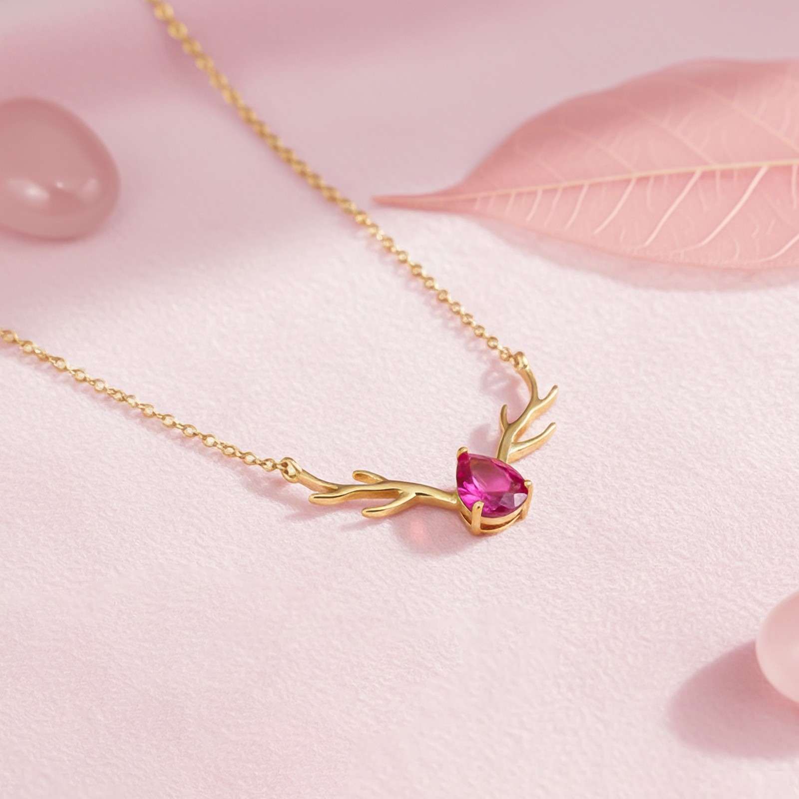 The Pink Sapphire adds a touch of femininity, while the deer head design symbolizes grace and gentleness. Perfect for both casual and formal occasions, this necklace is a must-have accessory for those who appreciate unique and stylish jewelry.